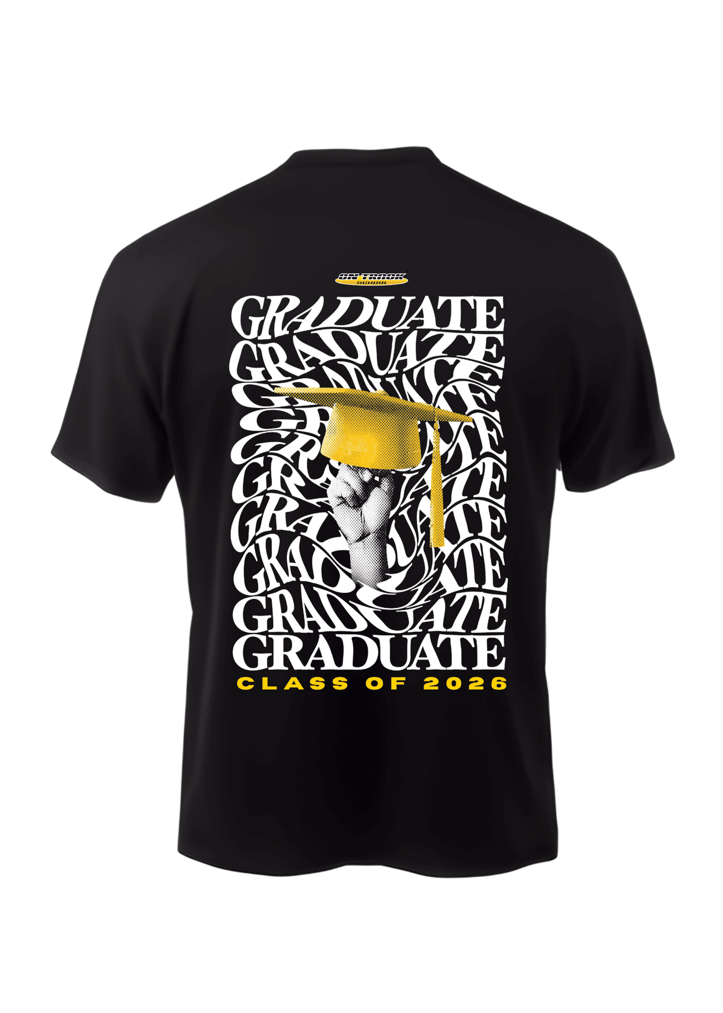 This is a crowd favorite classic 100% cotton tee. This very comfortable tee is perfect for the race track, a quick workout at the gym, or a night out with friends. 10″ silk-screened. On Track School Class of 25 signature shirt.